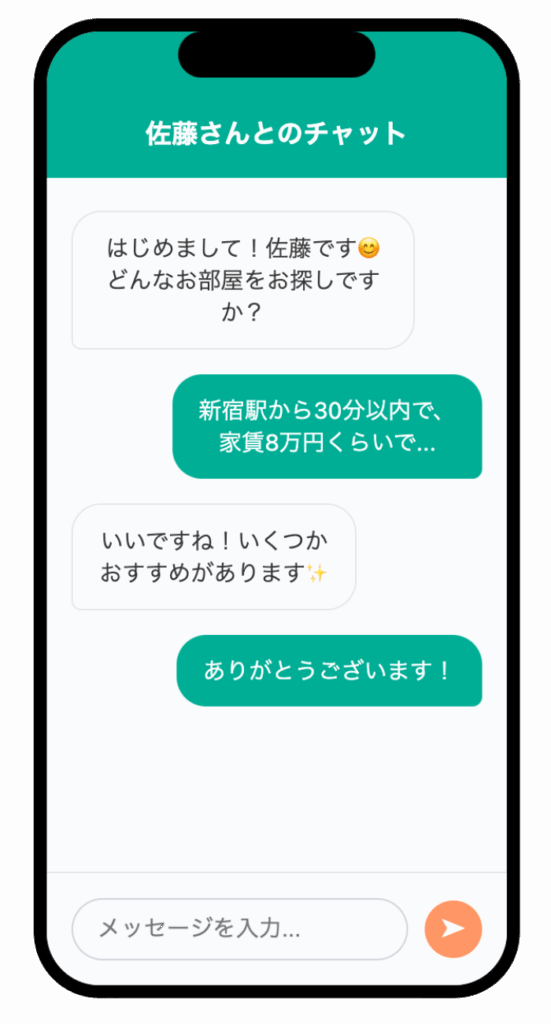 まずは気軽にメッセージで相談。希望条件や悩みを気軽に話してみよう